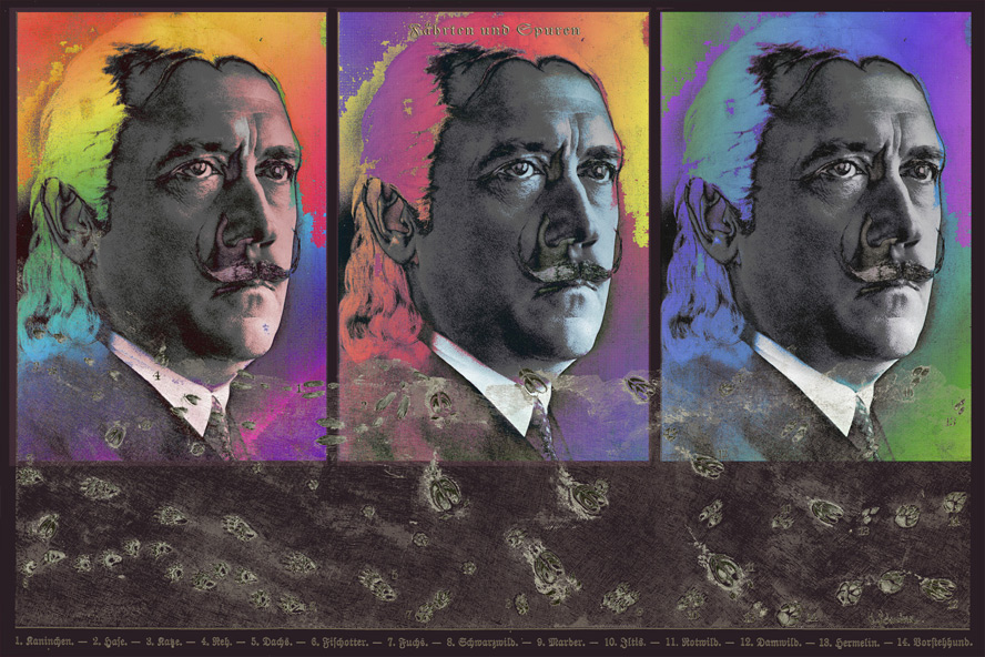 # ... auf die Koerpersymetrie komme ich mit der naechsten Zusammenstellung noch einmal zurueck. Martin Kippenberger habe ich in den 70er Jahren fotografiert und daraus spaeter die drei Portraitaufnahmen gemacht. Der "Mittelsmann" entspricht der originalen Aufnahme. Links besteht "Kippi" aus seinen linken und rechts aus den rechten Haelften. Drei unterschiedliche Gemuetsverfassungen ein und der selben Person.