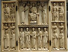 # ... als Triptychon (Plural: Triptychen, Triptycha) von altgriechisch tríptychos „dreifach gefaltet, aus drei Lagen bestehend“ werden dreigeteilte Gemälde oder dreiteilige Relieftafeln bezeichnet, die oft mit Scharnieren zum Aufklappen verbunden sind und sich insbesondere als Andachts- oder Altarbild finden. Triptychen bestehen aus einer Mitteltafel und zwei meist schmaleren Flügeln, manchmal ergänzt durch einen Sockel (Predella) unter dem Mittelteil. Ein Triptychon mit christlichen Motiven und mit beweglichen Seitenteilen zum Verschließen des Mittelteils ist eine mögliche Form eines Flügelaltars ...