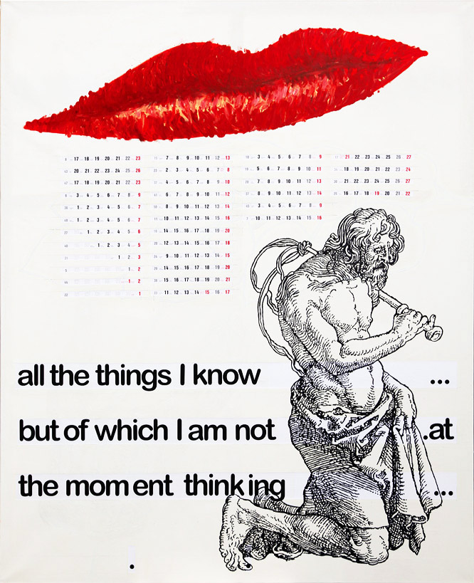 ... alle Uebersetzungen auf Leinwand 170cm x 210cm, Acryl, (Fotokopie) und Filzstift