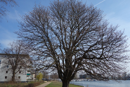 Das Schneiderlein aber war viel zu schwach, um den Baum zu halten, und als der Riese losließ, fuhr der Baum in die Höhe, und der Schneider ward mit in die Luft geschnellt.